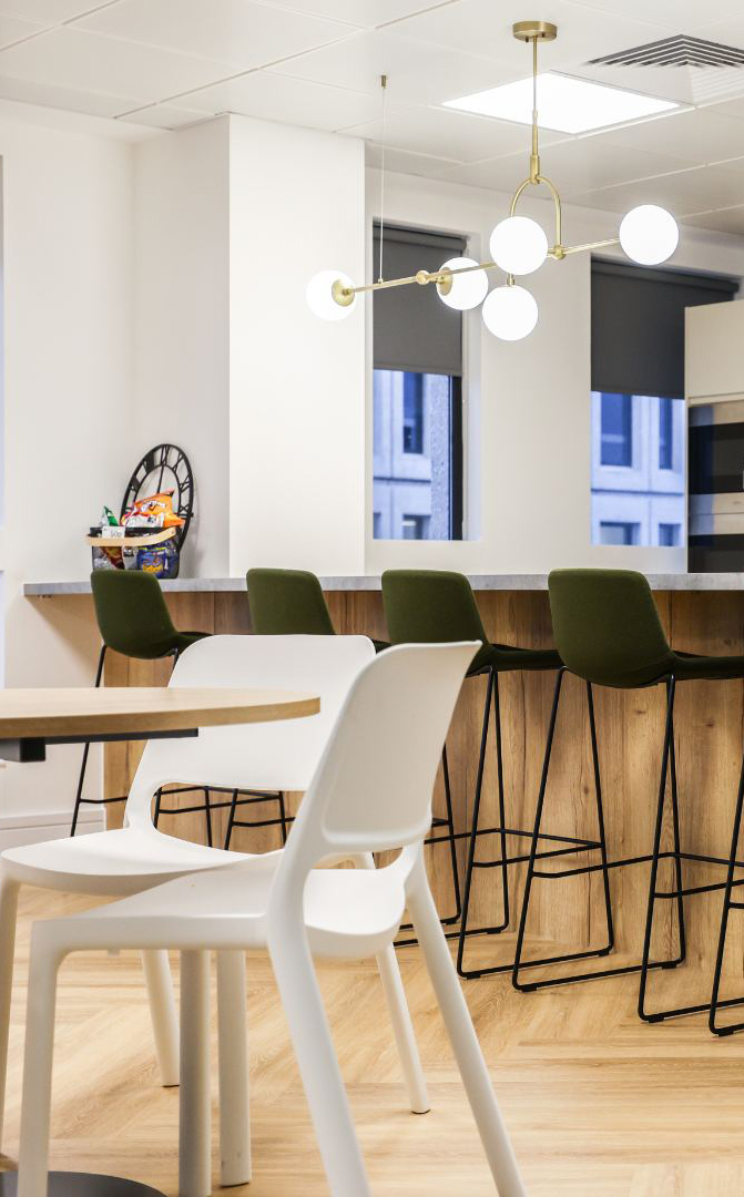 Our team accomplished all CAT B works, comprising of new flooring, decoration, furniture, and bespoke joinery. We also constructed new offices and meeting rooms, ensuring all finishes were in line with the branding for the GBCC. To accommodate the new layout, we relocated existing services and installed unique feature lighting and furniture.