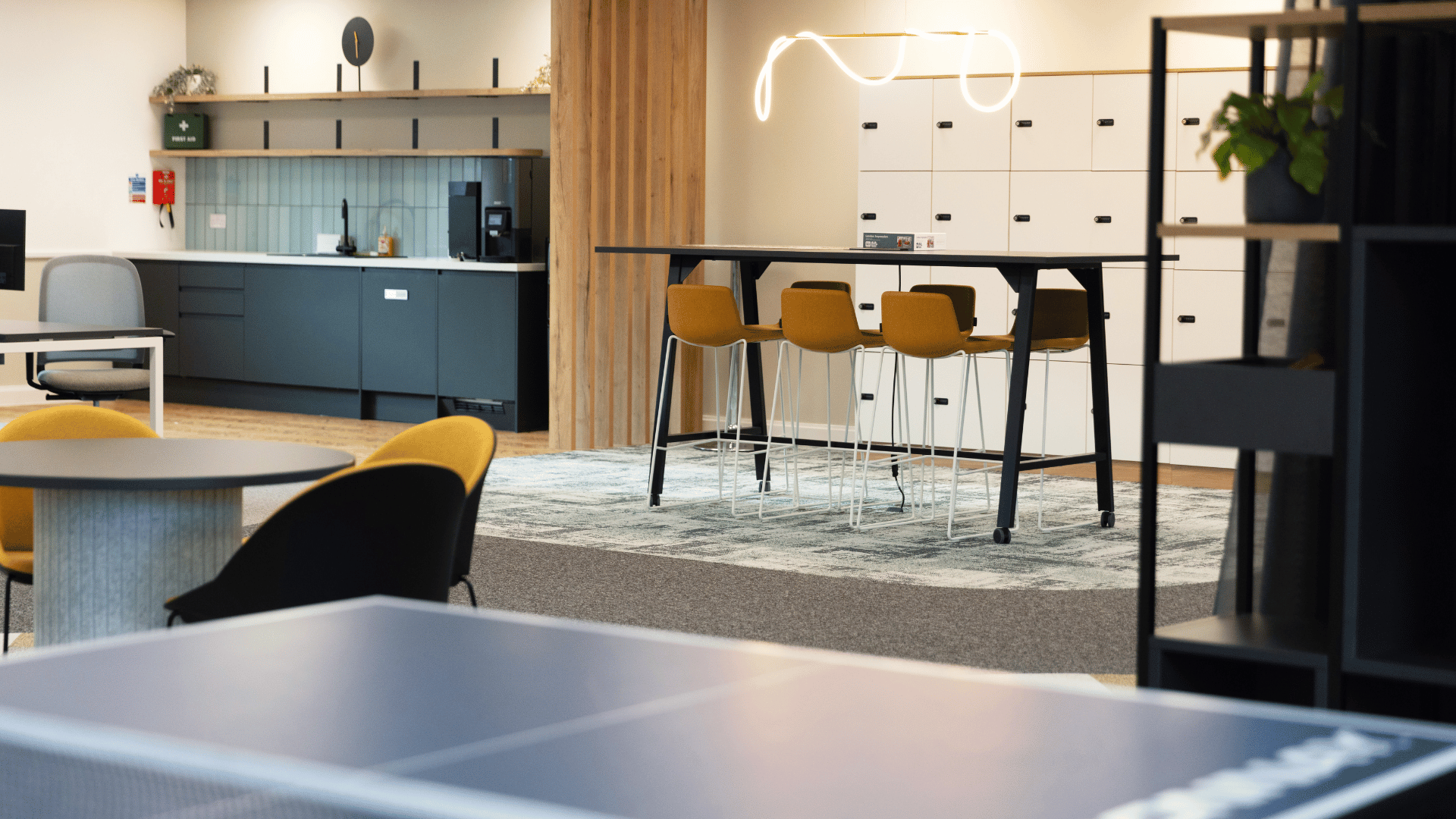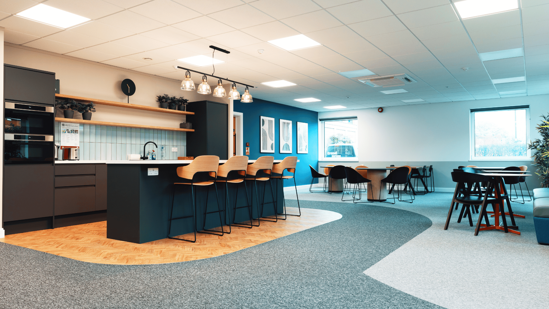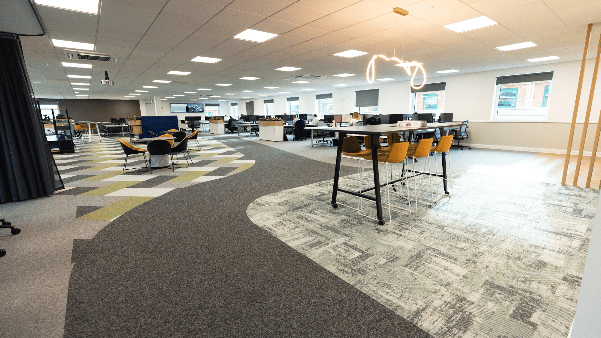 Oldfields envisioned a workspace that was not only highly functional but also visually striking, embodying a modern, professional, and welcoming atmosphere. The design needed to reflect the company’s brand identity while fostering a sense of energy, creativity, and collaboration among employees. A key focus was creating a contemporary and inviting environment that would encourage staff to return to the office, with carefully curated spaces that balanced comfort with productivity.