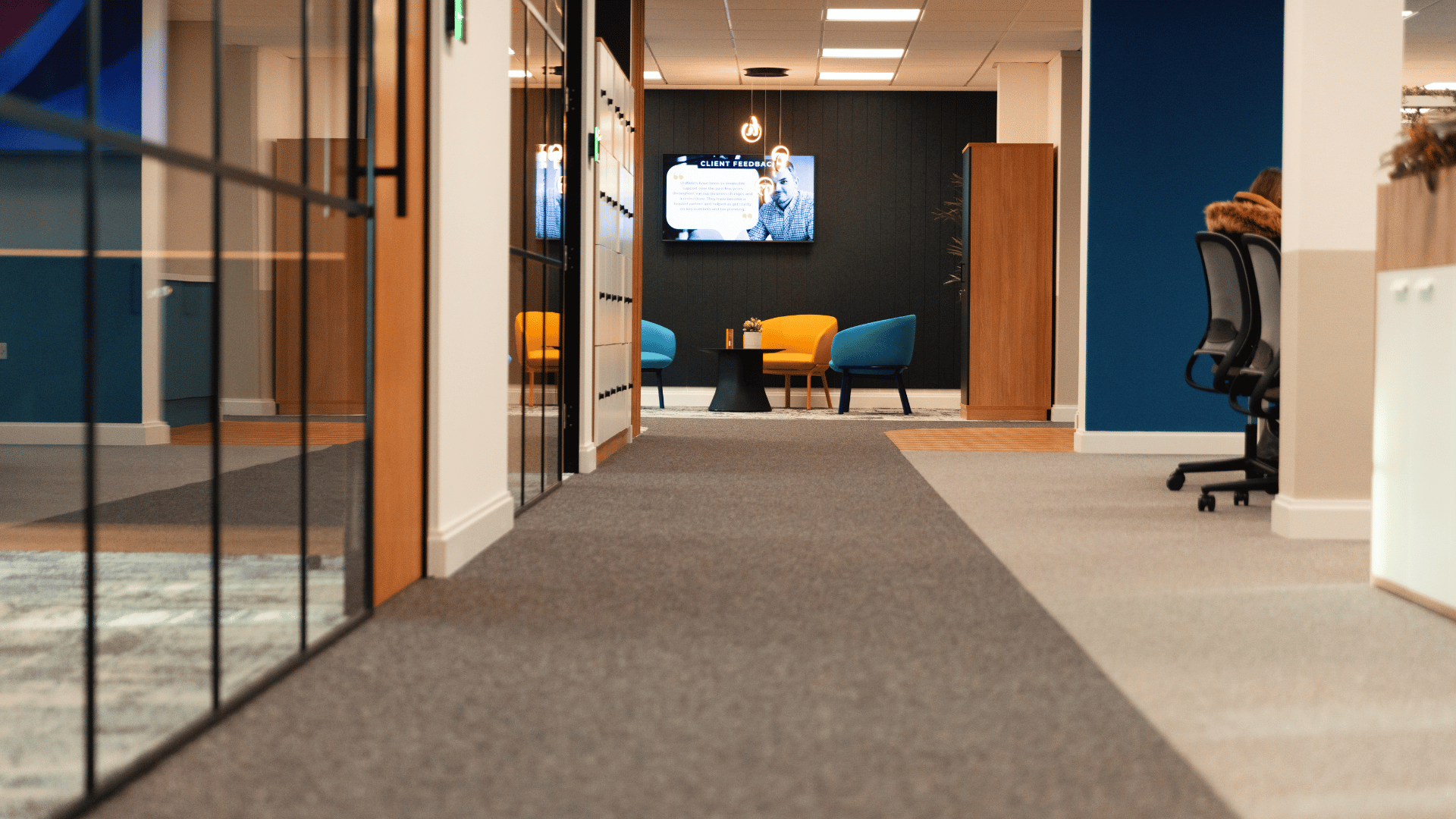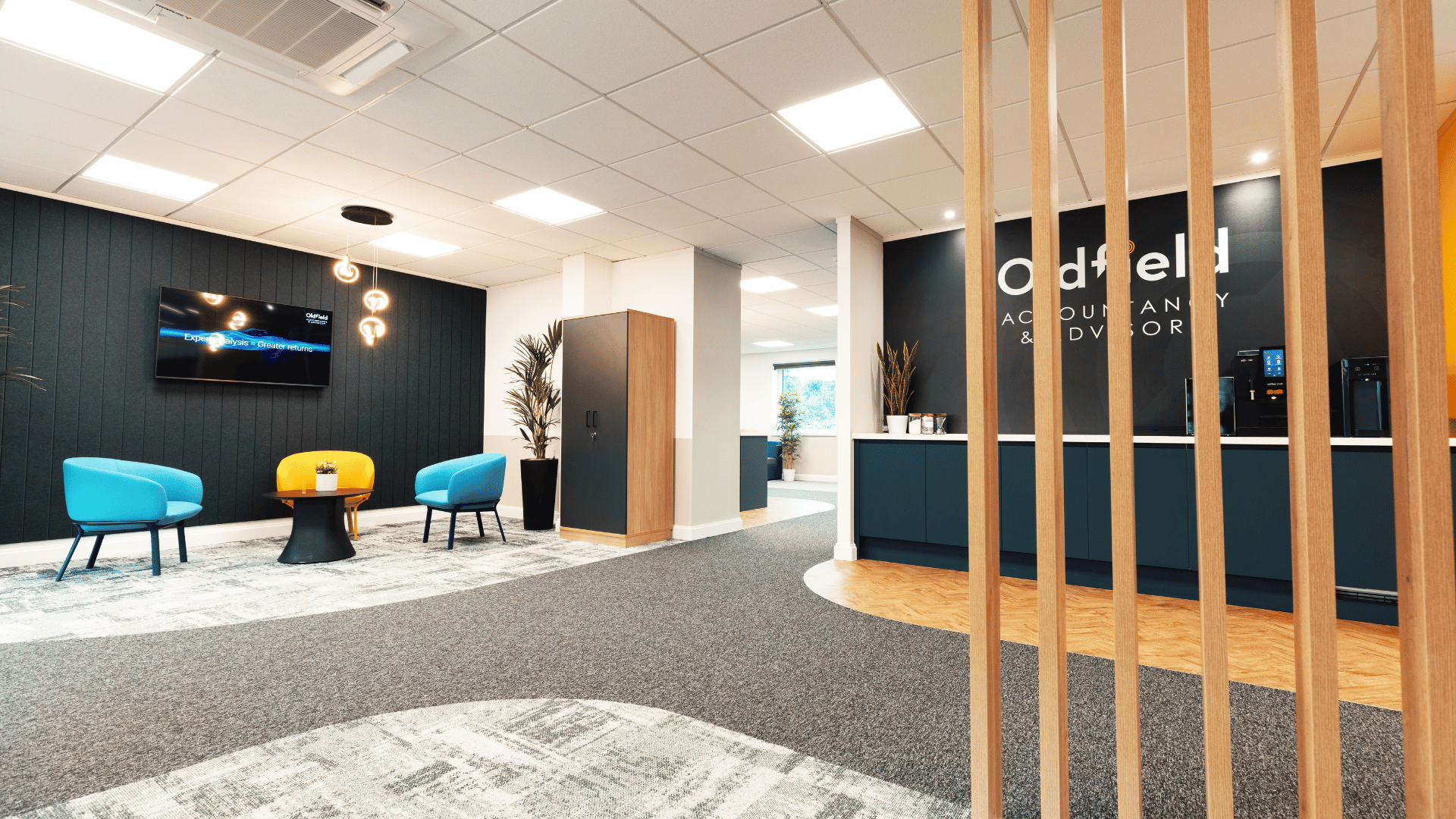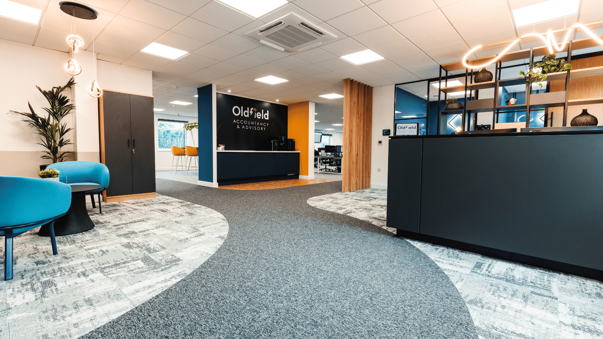 The completed office transformation successfully met Oldfields’ objectives, delivering a modern, dynamic, and inspiring workspace that supports both business growth and employee well-being. The refreshed environment has encouraged staff to return to the office, encourages greater collaboration, productivity, and engagement. State-of-the-art technology ensures seamless connectivity for hybrid workers, while the upgraded infrastructure, including a new air handling system and additional facilities, enhances comfort and functionality. The striking design, featuring high-quality finishes and an impressive client-facing area, creates a lasting impact, reinforcing Oldfields’ brand identity. Overall, the new office provides a vibrant and efficient workspace that not only meets current needs but is also adaptable for future expansion.